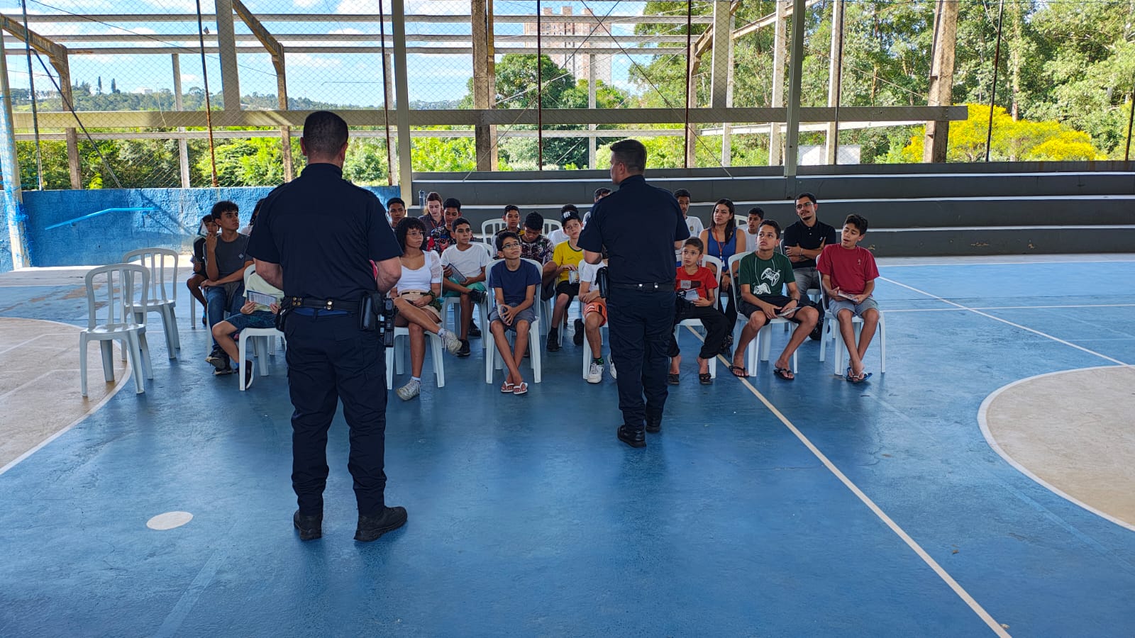 Atuamos em conjunto com as forças de segurança locais, levando palestras e materiais didáticos para dentro das salas de aula. Nossos agentes parceiros dialogam com os jovens numa linguagem acessível e acolhedora.